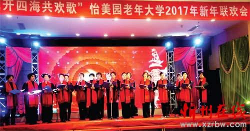 2016年12月29日,怡美園老年大學(xué)舉辦了“花開四海共歡歌”迎新年晚會(huì),怡美園老年大學(xué)的200多名學(xué)員與城區(qū)的文藝愛好者同臺(tái)共演了豐富多彩的喜慶節(jié)目,演員多數(shù)是中老年人。晚會(huì)上展演了聲樂、器樂、歌舞、健身操等40多個(gè)節(jié)目,臺(tái)上精彩的演出,贏得了觀眾的陣陣掌聲。(韓麗萍 攝)