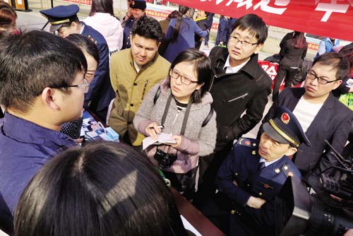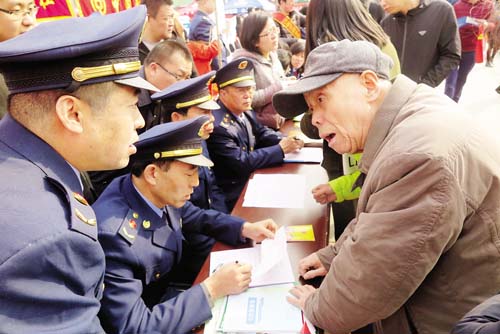 3月15日,忻州城區(qū)體育廣場上以“網絡誠信消費無憂”為主題的3·15國際消費者權益日宣傳活動火熱進行。活動現(xiàn)場,各部門和企業(yè)通過發(fā)放宣傳資料、設立咨詢臺、現(xiàn)場受理群眾投訴舉報、提供服務等方式,宣傳《消費者權益保護法》、《反不正當競爭法》、《無照經營查處辦法》等法律法規(guī)以及食品藥品安全、識假辨假等各類知識,吸引了眾多群眾積極參與。受理投訴臺前,陸續(xù)有消費者前來投訴,且有不少年輕人,所反映的問題既有涉及家具、汽車等金額較大的線下消費活動,也有通過電商平臺進行的線上交易。市工商局、消費者協(xié)會的工作人員將消費者投訴的問題一一記錄在冊,并表示會盡快調查處理。本版圖片攝影 魯明強 王 菲