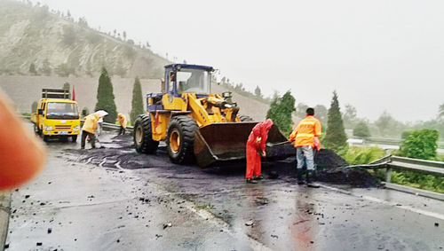 7月6日凌晨3點(diǎn),忻州高速公路養(yǎng)護(hù)工區(qū)接到忻州高速公路管理處電話通知:K654路段通往三家村收費(fèi)站互通匝道入口處,有一車輛側(cè)翻橫于路中拋撒煤面,影響了公路正常通行,需及時(shí)處置。養(yǎng)護(hù)工區(qū)接到通知后立即啟動(dòng)應(yīng)急預(yù)案,出動(dòng)搶險(xiǎn)人員9名、工具車一輛、皮卡車一輛、鏟車一臺、自卸汽車一臺火速趕往現(xiàn)場。搶險(xiǎn)人員冒著風(fēng)雨,按照標(biāo)準(zhǔn)設(shè)置了警示標(biāo)志,經(jīng)過三個(gè)多小時(shí)的緊張工作,清掃工作全部完成,路面恢復(fù)整潔暢通,保障了高速公路的安全通行。(任淑萍 攝)
