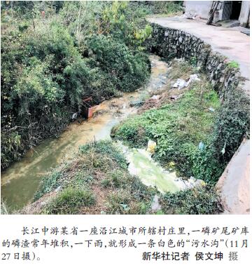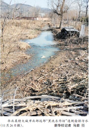 而在離城區(qū)稍遠的農(nóng)村,部分不法村鎮(zhèn)小作坊等污水違規(guī)排放時有發(fā)生。檢查組發(fā)現(xiàn),長江中游某省一座沿江城市所轄村莊里,一磷礦尾礦庫的磷渣常年堆積,一下雨,就形成一條白色的“污水溝”。檢查組在華北某特大城市北部遠郊一村中實地檢查時發(fā)現(xiàn),該村“黑洗衣作坊”違規(guī)偷排污水,污染環(huán)境。