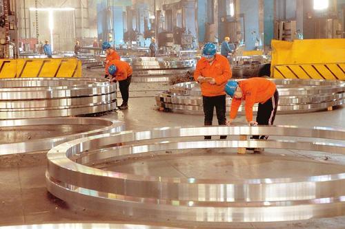 12月19日,山西天寶新能源有限公司生產(chǎn)線正滿負荷加工風(fēng)電項目配套的法蘭。該企業(yè)緊跟新能源發(fā)展步伐,今年已生產(chǎn)風(fēng)電法蘭3.3萬噸、塔筒100套,實現(xiàn)銷售收入4.06億元。其中,風(fēng)電法蘭占到國內(nèi)份額的50%。孫榮祥 攝