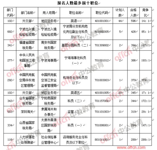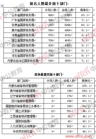 部門(mén):報(bào)名人數(shù)前十均被國(guó)稅“拿下”