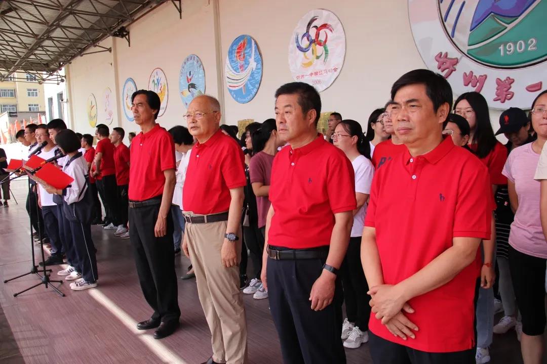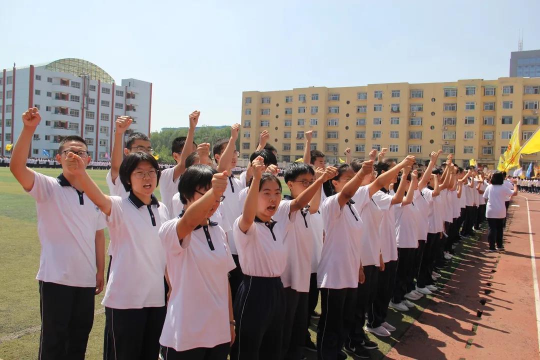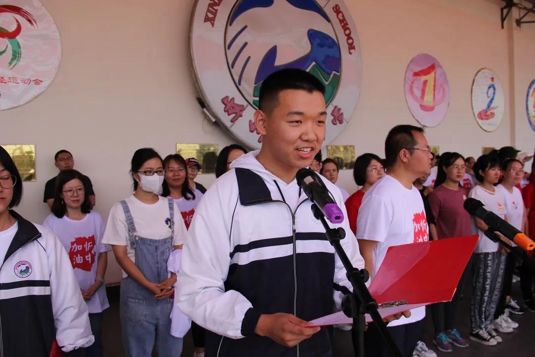 學(xué)生代表602班王一平同學(xué)在儀式上發(fā)言 校長(zhǎng)陳培器向2020屆學(xué)子下達(dá)高考出征令,為高三年級(jí)出征壯行,堅(jiān)定忻中勇士決勝高考的必勝信念,堅(jiān)信大家定能一往無前,所向披靡,再奪高峰。出征令下達(dá)后,副校長(zhǎng)白昌宏,政教處主任王新林,高三年級(jí)主任賀玉珍、何強(qiáng)高舉校旗、級(jí)旗帶領(lǐng)2020屆畢業(yè)學(xué)子跑步向前,高一、高二師生夾道掣旗助威,高喊“忻中加油、忻中必勝!”,全體畢業(yè)學(xué)子引吭宣誓,錚錚誓言穿云裂石,響遏行云。旌旗獵獵,聲震長(zhǎng)空,雄心和智慧在激情七月閃光,青春和夢(mèng)想在盛夏忻中涌動(dòng)。