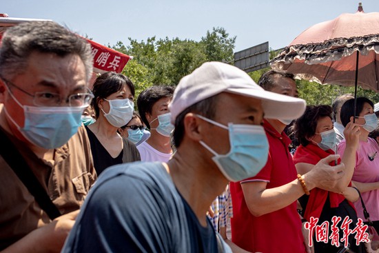 7月7日上午,北京市第八十中學(xué)門口,高考語文考試結(jié)束后,等待考生的家長們。中青報·中青網(wǎng)記者 李雋輝/攝