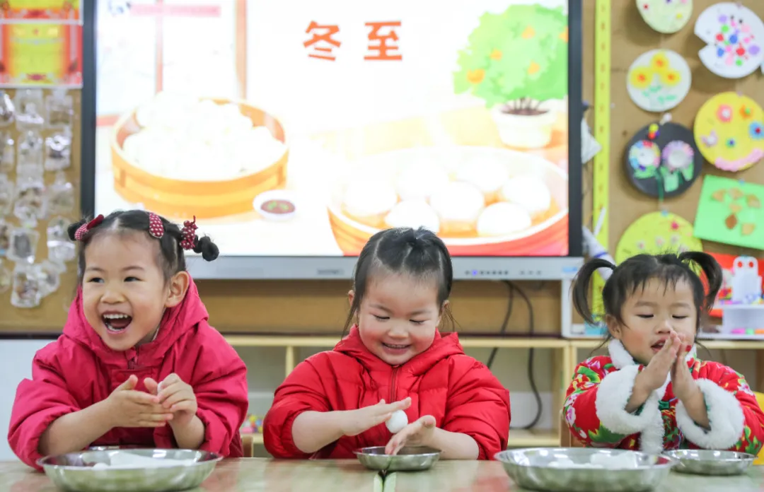 2024年12月20日,貴州省貴陽市開陽縣第二幼兒園的小朋友們在“知習(xí)俗 迎冬至”活動中學(xué)習(xí)搓湯圓。袁福洪 攝