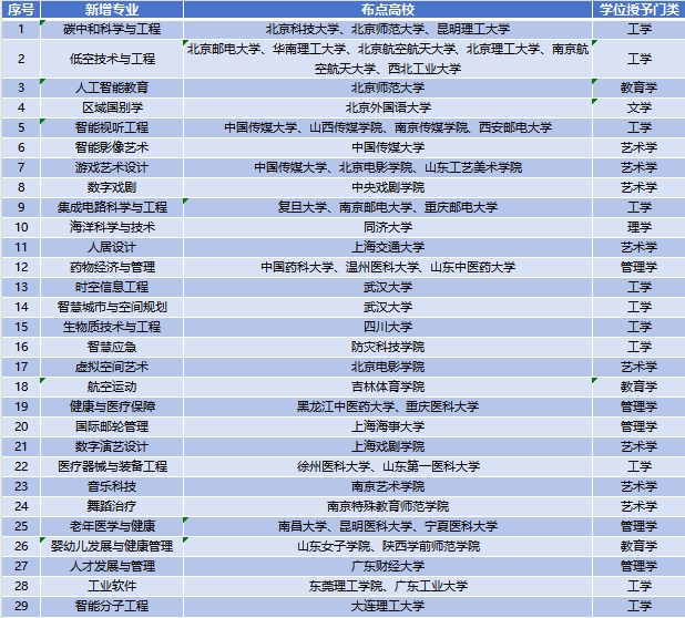 新增29種專業(yè)