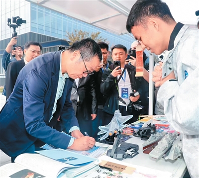 雙手捧著自己和小伙伴共同創(chuàng)作的科幻小說,一遍遍看著劉慈欣剛剛簽下的名字,高一學生陸逸航難掩激動。