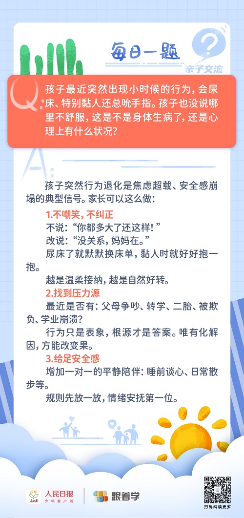 每日一題丨孩子出現(xiàn)年幼時的行為是生病了嗎?
