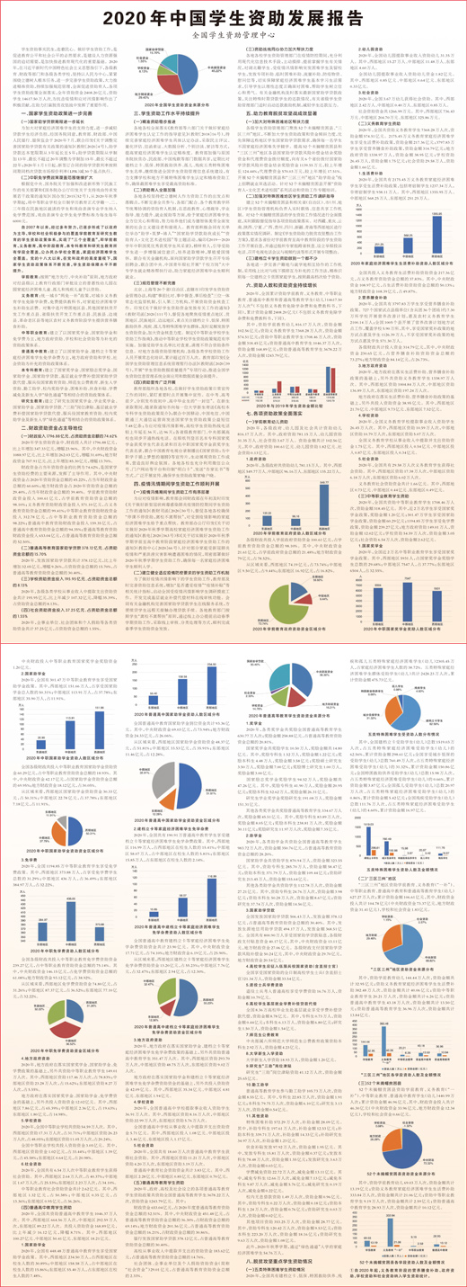 學(xué)生資助事關(guān)民生,連著民心。做好學(xué)生資助工作,是促進(jìn)教育公平和社會(huì)公平的必然要求,是建設(shè)人力資源強(qiáng)國的迫切需要,是加快推進(jìn)教育現(xiàn)代化的重要基礎(chǔ)。2020年,在習(xí)近平新時(shí)代中國特色社會(huì)主義思想指引下,各級教育、財(cái)政等部門和各級各類學(xué)校,堅(jiān)持以人民為中心,緊緊圍繞立德樹人根本任務(wù),進(jìn)一步完善學(xué)生資助政策,大力推進(jìn)精準(zhǔn)資助,持續(xù)加強(qiáng)規(guī)范管理,全面促進(jìn)資助育人,各項(xiàng)學(xué)生資助政策全面落實(shí),全年資助資金2408.20億元,資助學(xué)生14617.50萬人次,為抗擊疫情和應(yīng)對汛情影響作出了積極貢獻(xiàn),在助力打贏脫貧攻堅(jiān)戰(zhàn)中發(fā)揮了重要作用。