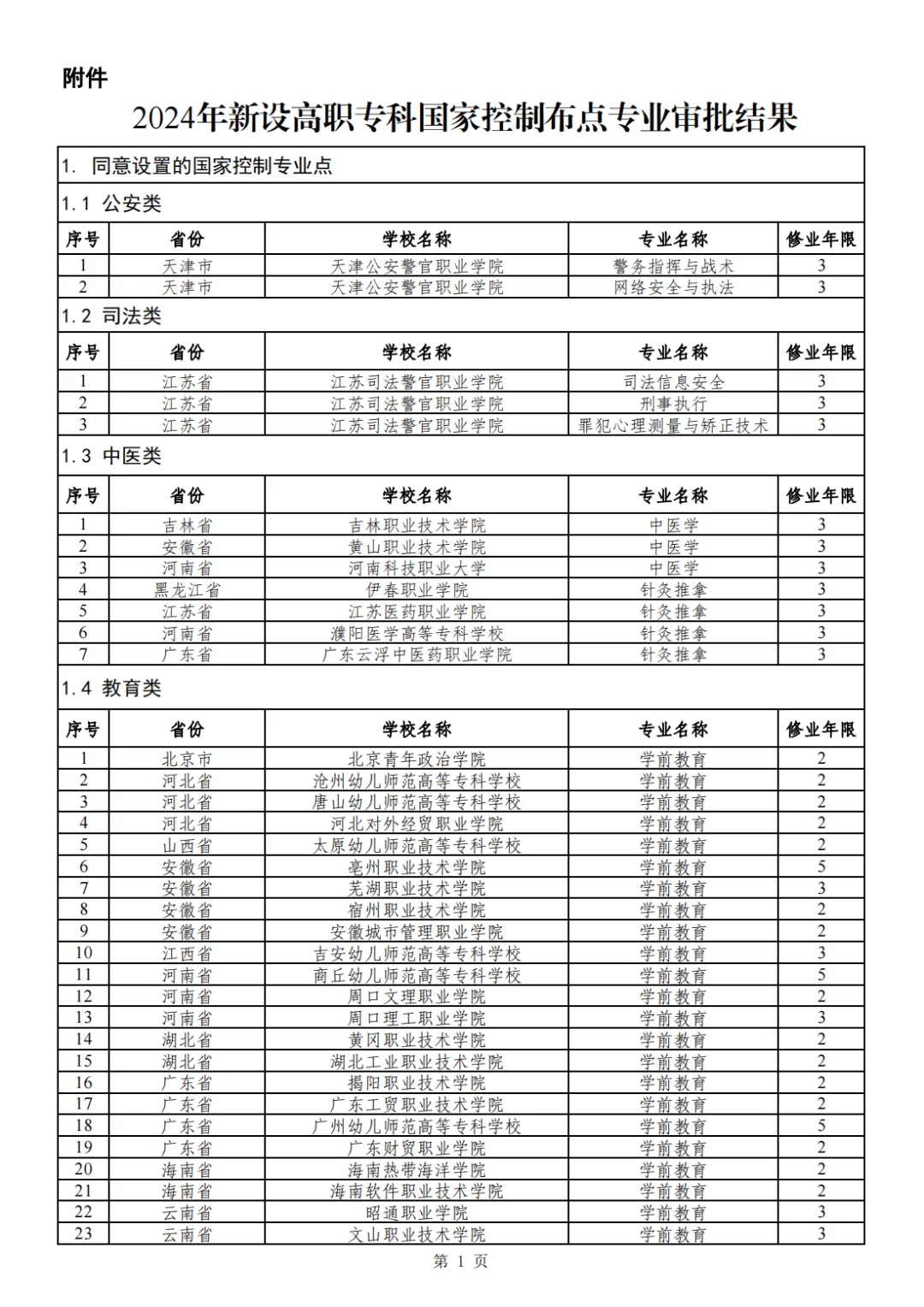 近日,教育部印發(fā)通知,公布2024年高等職業(yè)教育??茖I(yè)設(shè)置備案和審批結(jié)果。先跟教育小微一起來看2024年新設(shè)高職??茋铱刂撇键c(diǎn)專業(yè)審批結(jié)果。