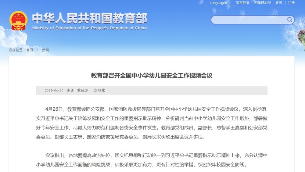 4月26日,教育部會同公安部、國家消防救援局等部門召開全國中小學(xué)幼兒園安全工作視頻會議,深入貫徹落實習(xí)近平總書記關(guān)于統(tǒng)籌發(fā)展和安全工作的重要指示批示精神,分析研判當(dāng)前中小學(xué)幼兒園安全工作形勢,部署做好今年安全工作,盡最大努力防范和遏制各類安全事件發(fā)生。教育部黨組成員、副部長、總督學(xué)王嘉毅和公安部黨委委員、副部長王志忠,國家消防救援局黨委委員、副局長宋樹欣出席會議并講話。