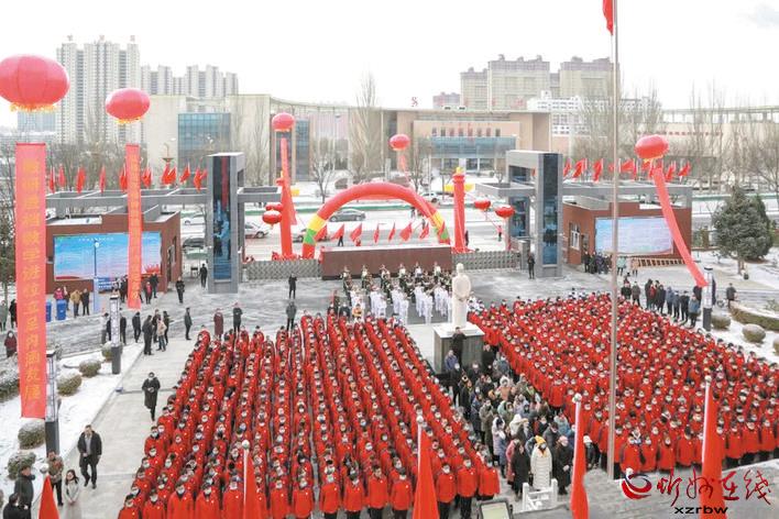 本報訊 近日,雪后的范亭中學(xué)彩門高懸,紅旗飄揚(yáng),軍樂高奏,鑼鼓喧天,校園提質(zhì)改造一期工程竣工典禮儀式在學(xué)校將軍廣場隆重舉行。