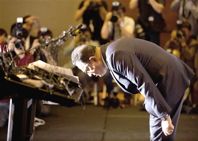 5月2日,在韓國首爾,利潔時(shí)韓國子公司負(fù)責(zé)人阿塔爾·薩夫達(dá)爾在記者會(huì)上鞠躬道歉。 英國日用品公司利潔時(shí)韓國子公司2日在首爾召開記者會(huì),就“加濕器殺菌劑致死事件”向韓國國民道歉并提出賠償方案。2011年韓國有多人因罹患不明原因的肺病而死亡,一度在韓國社會(huì)引發(fā)恐慌。韓國保健福祉部疾病管理本部經(jīng)調(diào)查后認(rèn)定,加濕器殺菌劑是導(dǎo)致不明肺病的元兇。 新華社/美聯(lián)