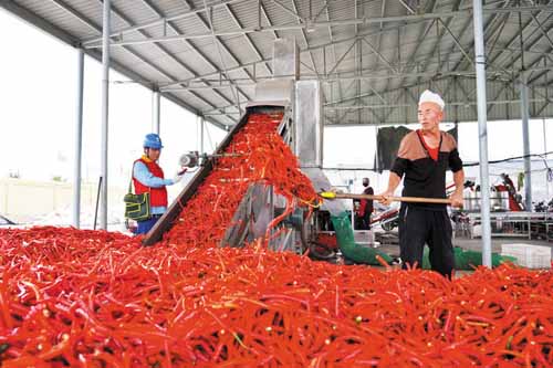 “以前種地靠天,現(xiàn)在種地全靠電。電網(wǎng)升級改造,你們把三相電架設(shè)到產(chǎn)業(yè)園區(qū)后電力充足,不再發(fā)生經(jīng)常停電的現(xiàn)象,澆地灌溉更加快捷、方便。辣椒之所以有這樣的收成,都歸功于你們充足的電力和優(yōu)質(zhì)服務(wù),今年我們已經(jīng)簽下了100萬噸的辣醬訂單,正加班加點生產(chǎn)著?!眻@區(qū)負責(zé)人楊新軍一臉笑意迎了上來。