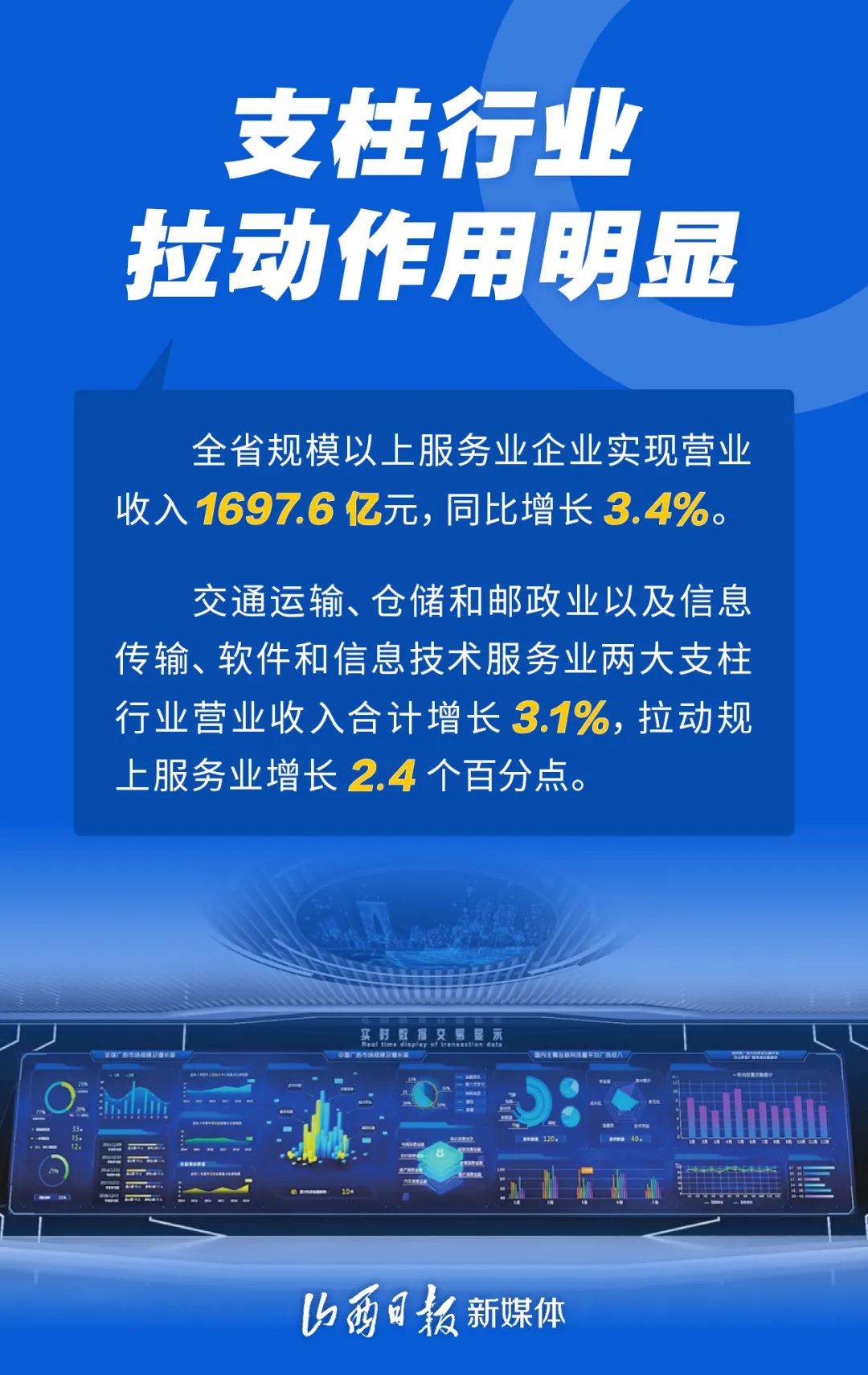 1至5月份,全省規(guī)模以上服務(wù)業(yè)延續(xù)平穩(wěn)增長態(tài)勢,支柱行業(yè)貢獻顯著,文旅相關(guān)服務(wù)業(yè)恢復向好,生活性服務(wù)業(yè)快速恢復。一組海報了解山西規(guī)模以上服務(wù)業(yè)運行情況。