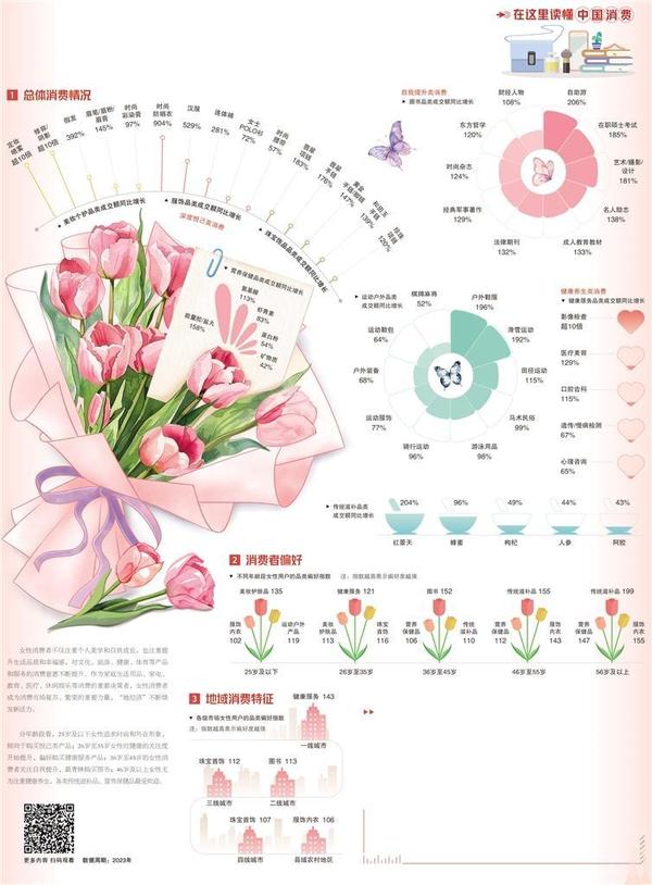 伴隨社會(huì)地位和經(jīng)濟(jì)實(shí)力的不斷提高,女性的消費(fèi)觀念和習(xí)慣正在發(fā)生轉(zhuǎn)變,她們?cè)诎缪莺蒙鐣?huì)賦予的各種角色的同時(shí),愈加認(rèn)可自我價(jià)值,更加關(guān)注“為自己投資”“讓自己快樂(lè)”。數(shù)據(jù)顯示,女性群體在文化旅游、運(yùn)動(dòng)戶外、醫(yī)療保健等方面的消費(fèi)占比均有明顯增長(zhǎng),深度悅己、自我提升、健康養(yǎng)生成為她們的生活關(guān)鍵詞。