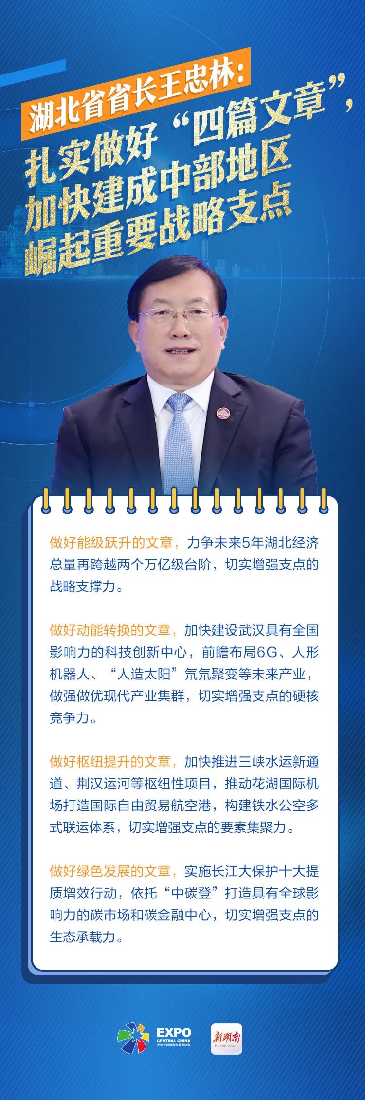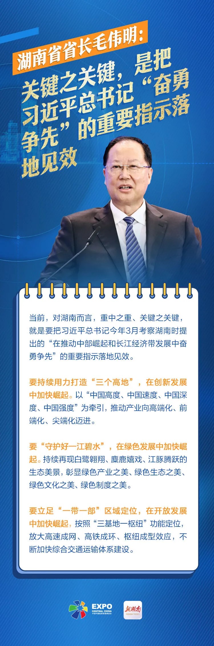5月27日,中共中央政治局會議審議通過《新時代推動中部地區(qū)加快崛起的若干政策措施》,這是繼今年3月20日在長沙召開新時代推動中部地區(qū)崛起座談會后,中央層面再度聚焦中部地區(qū)崛起。 站在新的歷史起點,中部六省如何在高質(zhì)量發(fā)展賽道上跑出加速度?6月1日,第十三屆中部博覽會中部投資促進推介會在長沙召開,首次設(shè)置六省省長對話環(huán)節(jié)。湖南、山西、安徽、江西、河南、湖北等六省省長圍繞落實中部地區(qū)崛起戰(zhàn)略談舉措、話合作、謀發(fā)展,中部六兄弟,同心向未來。 一起聽聽各位省長都說了些什么?