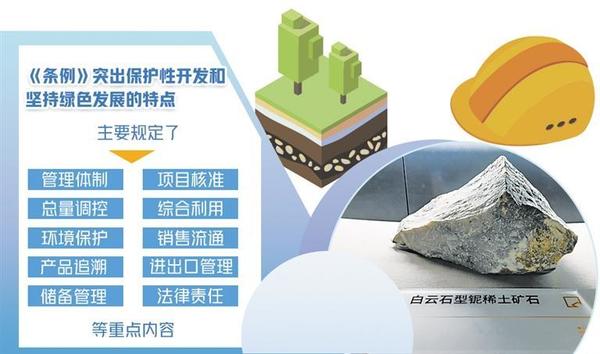 《稀土管理條例》(以下簡稱《條例》)日前公布,自2024年10月1日起施行?!稐l例》明確,稀土資源屬于國家所有,國家依法加強(qiáng)對稀土資源的保護(hù),對稀土資源實行保護(hù)性開采。同時,鼓勵和支持稀土產(chǎn)業(yè)新技術(shù)、新工藝、新產(chǎn)品、新材料、新裝備的研發(fā)和應(yīng)用,持續(xù)提升稀土資源開發(fā)利用水平,推動稀土產(chǎn)業(yè)高端化、智能化、綠色化發(fā)展。專家認(rèn)為,《條例》首次以行政立法形式規(guī)范稀土資源的開發(fā)利用,主要規(guī)定了管理體制、項目核準(zhǔn)、總量調(diào)控、綜合利用、環(huán)境保護(hù)、銷售流通、產(chǎn)品追溯、進(jìn)出口管理、儲備管理、法律責(zé)任等重點內(nèi)容,突出了保護(hù)性開發(fā)和堅持綠色發(fā)展的特點,對推動稀土產(chǎn)業(yè)高質(zhì)量發(fā)展具有重大意義。規(guī)范稀土資源開發(fā)利用稀土是現(xiàn)代工業(yè)中不可或缺的重要元素和關(guān)鍵戰(zhàn)略資源。中國有色金屬工業(yè)協(xié)會黨委書記、會長葛紅林表示,稀土被譽(yù)為“工業(yè)維生素”,是高新技術(shù)產(chǎn)業(yè)和國防科技工業(yè)的關(guān)鍵原料,是關(guān)系國家安全和國民經(jīng)濟(jì)命脈的戰(zhàn)略資源,對推動新型工業(yè)化發(fā)展具有不可替代性。中國稀土集團(tuán)黨委書記、董事長敖宏介紹,稀土是改造提升傳統(tǒng)產(chǎn)業(yè)、發(fā)展戰(zhàn)略性新興產(chǎn)業(yè)和國防科技工業(yè)不可或缺的關(guān)鍵材料。隨著新能源汽車、風(fēng)力發(fā)電、智能制造等戰(zhàn)略性新興產(chǎn)業(yè)和節(jié)能電機(jī)等傳統(tǒng)產(chǎn)業(yè)改造升級,全球稀土需求快速增加。近年來,我國圍繞稀土行業(yè)準(zhǔn)入標(biāo)準(zhǔn)、行業(yè)整合、環(huán)境保護(hù)等方面出臺了多項政策措施,產(chǎn)業(yè)發(fā)展良好,帶動建立起相對完整的產(chǎn)業(yè)體系,資源儲量、產(chǎn)量、消費量、貿(mào)易量均居世界第一位,并持續(xù)加強(qiáng)稀土資源保護(hù)開發(fā)和合理利用,為科技進(jìn)步和經(jīng)濟(jì)社會發(fā)展作出了突出貢獻(xiàn)。瞄準(zhǔn)新一輪科技革命和產(chǎn)業(yè)變革方向,我國加快稀土供給側(cè)結(jié)構(gòu)性改革,不斷開辟發(fā)展新領(lǐng)域新賽道、塑造發(fā)展新動能新優(yōu)勢,產(chǎn)業(yè)鏈不斷完善,產(chǎn)業(yè)規(guī)模不斷擴(kuò)大,產(chǎn)品品種不斷豐富,產(chǎn)品質(zhì)量不斷提高,市場規(guī)模不斷擴(kuò)大,國際影響力持續(xù)提升。但稀土管理仍存在一些突出問題,包括覆蓋全產(chǎn)業(yè)鏈的管理職責(zé)、監(jiān)管措施有待完善,產(chǎn)業(yè)創(chuàng)新能力和綠色化智能化水平亟需提高,行業(yè)秩序需要進(jìn)一步規(guī)范,整治非法開采或非法冶煉分離、無指標(biāo)或超指標(biāo)生產(chǎn)、買賣非法稀土產(chǎn)品等違法行為的手段不足、處罰力度不夠。隨著行業(yè)的不斷發(fā)展,產(chǎn)業(yè)鏈條的持續(xù)延伸,稀土產(chǎn)業(yè)缺少綜合性法律法規(guī)的問題日益凸顯,難以滿足行業(yè)高質(zhì)量發(fā)展需求。稀土行業(yè)涵蓋開采、冶煉分離、產(chǎn)品流通、二次利用、進(jìn)出口以及儲備等諸多環(huán)節(jié),涉及中央政府多個管理部門,亟需依法建立分工明確、密切配合的管理體制。葛紅林認(rèn)為,稀土產(chǎn)業(yè)大而不強(qiáng)、全而不精的問題依然存在,在制度保障銜接、資源保護(hù)性開發(fā)、原始基礎(chǔ)創(chuàng)新、行業(yè)秩序規(guī)范等方面仍面臨一些困難和挑戰(zhàn)?!疤貏e是在工藝綠色化、產(chǎn)品高端化、制造智能化方面有待提升,產(chǎn)業(yè)結(jié)構(gòu)要持續(xù)優(yōu)化,產(chǎn)業(yè)秩序需要進(jìn)一步規(guī)范?!卑胶暾f。推進(jìn)產(chǎn)業(yè)轉(zhuǎn)型升級包鋼(集團(tuán))公司黨委常委、副總經(jīng)理兼北方稀土黨委書記、董事長劉培勛認(rèn)為,《條例》為解決制約產(chǎn)業(yè)高質(zhì)量發(fā)展的堵點、難點開出了法治良方。完善了生態(tài)環(huán)境保護(hù)、資源儲備的有關(guān)規(guī)定,形成了更加科學(xué)有效的管理方式,更有利于稀土資源的保護(hù)性開發(fā);明確提出國家鼓勵科技創(chuàng)新和人才培養(yǎng),支持稀土新產(chǎn)品、新材料、新工藝的研發(fā)和產(chǎn)業(yè)化,更有利于稀土資源的高質(zhì)化利用;建立起從國家到地方再到企業(yè)分層管理、各司其職、各負(fù)其責(zé)的治理體系,并首次對違法違規(guī)行為設(shè)定處罰標(biāo)準(zhǔn),進(jìn)一步加壓引導(dǎo)行業(yè)秩序整頓,更有利于行業(yè)規(guī)范化管理?!稐l例》致力于促進(jìn)稀土產(chǎn)業(yè)高質(zhì)量發(fā)展。工業(yè)和信息化部原材料工業(yè)司相關(guān)負(fù)責(zé)人解讀,國家對稀土產(chǎn)業(yè)發(fā)展實行統(tǒng)一規(guī)劃,并突出科技創(chuàng)新。鼓勵和支持稀土產(chǎn)業(yè)新技術(shù)、新工藝、新產(chǎn)品、新材料、新裝備的研發(fā)和應(yīng)用。鼓勵和支持企業(yè)利用先進(jìn)適用技術(shù)、工藝對稀土二次資源進(jìn)行綜合利用。同時,實現(xiàn)綠色發(fā)展、安全生產(chǎn)。從事稀土開采、冶煉分離、金屬冶煉、綜合利用的企業(yè)應(yīng)當(dāng)遵守有關(guān)礦產(ch