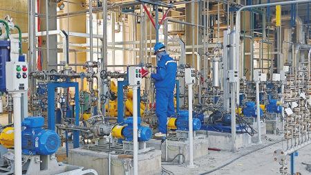 制造“綠色”,更要“綠色”制造。在廠區(qū)內(nèi),循環(huán)水站、凈水廠、污水站等廢棄物處理區(qū)早已拔地而起,進入試運行環(huán)節(jié)?!皬S區(qū)所產(chǎn)生的廢氣經(jīng)過DFTO處理達標排放,廢固由資質(zhì)單位集中回收處理,污水經(jīng)過凈水處理、回用水裝置回收循環(huán)利用,可實現(xiàn)零排放。另外,還充分回收利用了開發(fā)區(qū)內(nèi)的新石能源公司產(chǎn)生的焦?fàn)t氣作為燃料,讓綠色環(huán)保貫穿產(chǎn)品始終?!表椖抗こ處煆埡陚ソ榻B道。