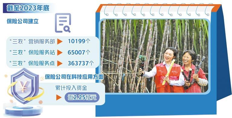 科技的運(yùn)用也有效推動(dòng)保險(xiǎn)業(yè)服務(wù)農(nóng)村。中國(guó)保險(xiǎn)行業(yè)協(xié)會(huì)發(fā)布的《保險(xiǎn)業(yè)高質(zhì)量服務(wù)鄉(xiāng)村振興藍(lán)皮書(shū)(2024)》顯示,保險(xiǎn)業(yè)有效提升了縣域和農(nóng)村機(jī)構(gòu)網(wǎng)點(diǎn)覆蓋率,截至2023年底,保險(xiǎn)公司建立“三農(nóng)”營(yíng)銷服務(wù)部10199個(gè),“三農(nóng)”保險(xiǎn)服務(wù)站65007個(gè),“三農(nóng)”保險(xiǎn)服務(wù)點(diǎn)363737個(gè)。2023年,保險(xiǎn)公司在科技應(yīng)用方面累計(jì)投入資金近2.25億元,主要用于空間信息技術(shù)、AI識(shí)別、人工智能、物聯(lián)網(wǎng)等科技手段應(yīng)用,構(gòu)建農(nóng)業(yè)生產(chǎn)、風(fēng)險(xiǎn)信息數(shù)據(jù)共享平臺(tái)。