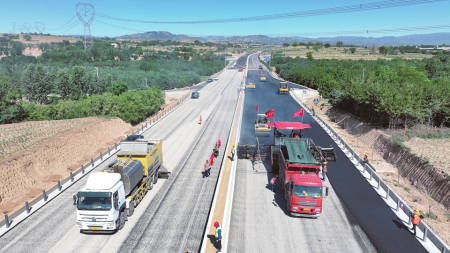 最近,國道108線改建工程(忻州段)激戰(zhàn)正酣,平地機、裝載機、瀝青攤鋪機等設(shè)備馬力全開,路面水穩(wěn)層攤鋪、滑膜機工藝澆筑中央護欄等工序正在緊鑼密鼓地進(jìn)行。工人們忙碌穿梭,安全員逐項排查隱患,技術(shù)人員同步檢測施工質(zhì)量,現(xiàn)場一片繁忙有序。掀起大干快干的新高潮,已進(jìn)場施工作業(yè)人員300余人,主要機械設(shè)備進(jìn)場100臺套,道路項目水穩(wěn)層鋪設(shè)完成總量的80%,下面層瀝青鋪設(shè)完成總量的60%、上面層瀝青鋪設(shè)完成總量的25%,中央分隔帶護欄累計完成59.41%。涌動的數(shù)字可以折射火熱的工作場面。國道108線忻州段改建工程項目是“十四五”期間全省規(guī)模最大、里程最長、投資最多的國省干線新改建工程。今年以來,山西路橋集團忻州國道項目建設(shè)管理有限公司提前吹響決戰(zhàn)的沖鋒號,圍繞項目建設(shè)爭分奪秒搶進(jìn)度。項目部正采取“白+黑”“五+二”的工作模式,組織工人對路面、路基、交安、機電、綠化采取交叉作業(yè)等方式施工,在確保質(zhì)量安全的前提下,各項工作正按照預(yù)期目標(biāo)穩(wěn)步推進(jìn)。
