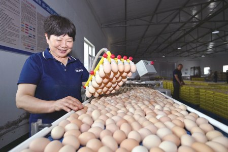 工作人員集中整理、包裝合格蛋品。