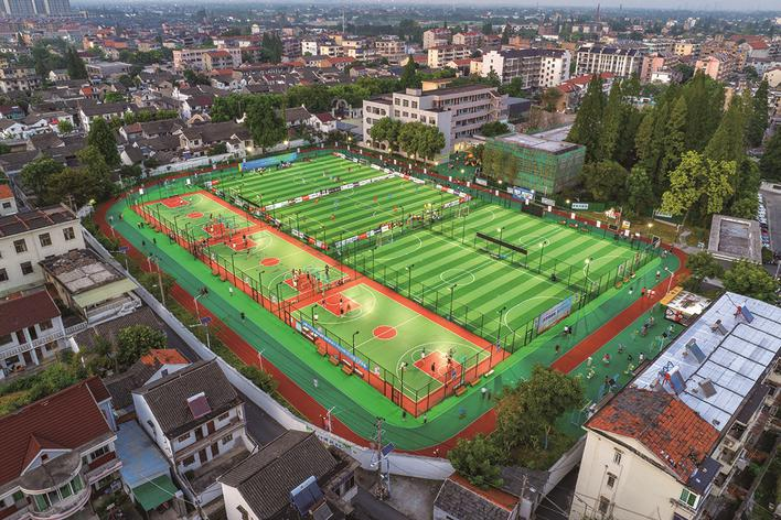 對(duì)于社區(qū)嵌入式服務(wù)綜合體所在的王店鎮(zhèn)全民健身中心,大家也都表現(xiàn)出極大的興趣。這是2020年王店鎮(zhèn)利用王店中學(xué)校區(qū)舊址打造的一個(gè)樞紐式運(yùn)動(dòng)場所,足球場、籃球場、門球場、室內(nèi)健身房等多個(gè)室內(nèi)外運(yùn)動(dòng)場所一應(yīng)俱全。更特別的是,它不僅是嘉興市首個(gè)鄉(xiāng)鎮(zhèn)全民健身中心,更是當(dāng)?shù)鼐拇蛟斓囊粋€(gè)集體育活動(dòng)、技能培訓(xùn)和休閑活動(dòng)于一體的文體中心,擁有齊全的健身設(shè)施和培訓(xùn)場地,能滿足周邊居民對(duì)休閑運(yùn)動(dòng)和企業(yè)員工提升素質(zhì)的需求。