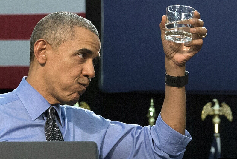 當(dāng)天,奧巴馬主動喝下當(dāng)?shù)亟?jīng)過過濾的飲用水,以此表明對這座城市水質(zhì)的信心。