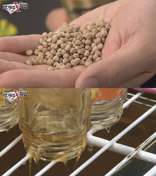 濟(jì)州島不法商家高價銷售給中國游客等外國游客的假冒偽劣馬骨丸(上圖)和油菜花蜜(下圖)/CHANNEL A《食物X檔案》畫面截圖
