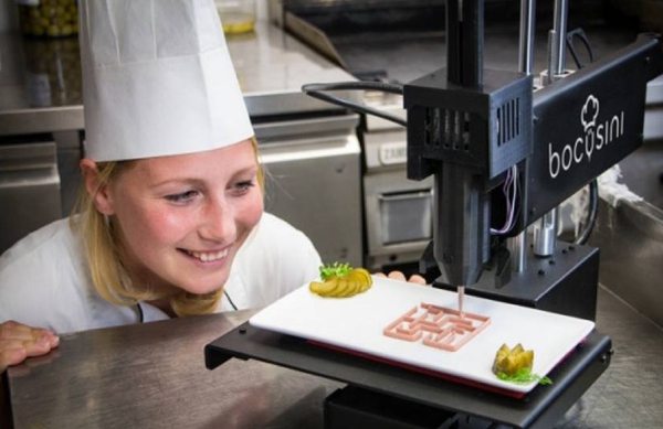 一家號(hào)稱全3D打印的餐館將于7月晚些時(shí)候在英國(guó)倫敦開(kāi)張,不僅所有食物是3D“打印”而成,連餐桌、餐椅、燈具和餐具都出自這種技術(shù)。這家名為“食物墨水”的餐館將提供9種3D打印菜肴,并在網(wǎng)上直播“烹飪”過(guò)程。除了吃飯,顧客還可以在這家高技術(shù)氛圍濃厚的餐館體驗(yàn)虛擬現(xiàn)實(shí)技術(shù),欣賞電腦創(chuàng)作的音樂(lè)。餐館方面沒(méi)有透露3D打印菜肴的細(xì)節(jié),只說(shuō)食物主要原料將呈醬狀,打印菜肴的過(guò)程類似面點(diǎn)師用擠花袋把奶油擠在蛋糕上做造型?!笆澄锬比司M(fèi)250英鎊(約合2220元人民幣)的高價(jià)位招來(lái)質(zhì)疑:誰(shuí)會(huì)花這么多錢吃一堆擠在塑料餐具里的漿糊?