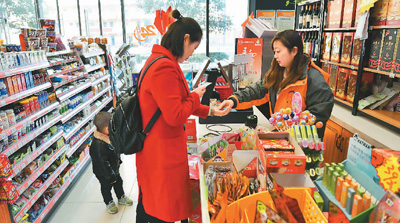 西安慧靈公益超市的店員在給顧客找零。記者 劉瀟 攝