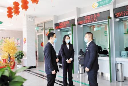 繁峙農(nóng)商銀行董事長(zhǎng)李紅梅、行長(zhǎng)宿俊斌在濱河支行檢查指導(dǎo)工作