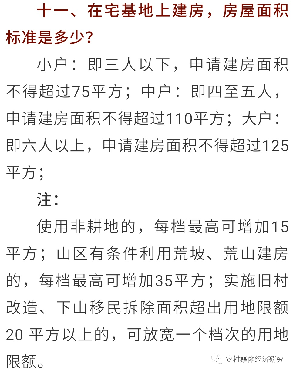 十、農(nóng)村宅基地面積標準是多少?根據(jù)《土地管理法》相關(guān)規(guī)定:農(nóng)村宅基地用地標準:占用農(nóng)用地每處不超過200平方米(0.30畝),占用建設(shè)用地和未利用地每處不超過233平方米(0.35畝)。同時《土地管理法》第62條規(guī)定:農(nóng)村村民宅基地面積不得超過省、自治區(qū)、直轄市規(guī)定的標準。也就是說農(nóng)村宅基地按照各個省、自治區(qū)或直轄市相關(guān)的規(guī)定,全國并沒有統(tǒng)一的計算方法,因為涉及到山區(qū)、平原、草原等地理形勢的因素,每個地區(qū)的政策不同。