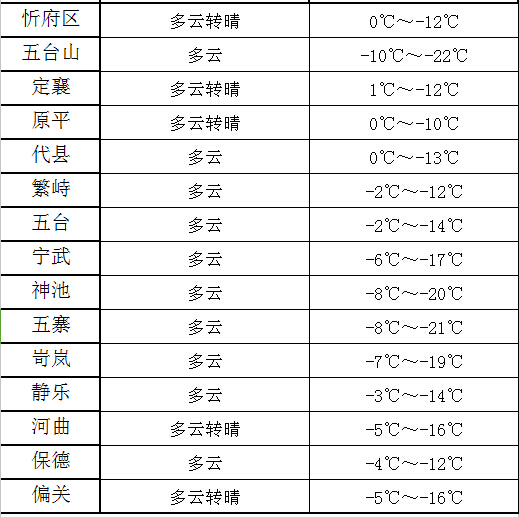 附:忻州市各縣(市、區(qū))天氣預(yù)報