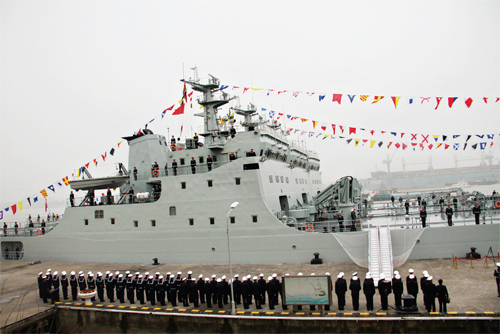 據(jù)悉,“五臺山艦”是我國自行研究設(shè)計的大型登陸艦,舷號為917,最大排水量5008噸,最大航速20節(jié)。該型登陸艦是我海軍近年來建造和裝備的新型登陸艦,性能設(shè)計更加貼近聯(lián)合登陸作戰(zhàn)的實戰(zhàn)需求。主要使命是登陸作戰(zhàn)及抗登陸作戰(zhàn)中實施輸送登陸兵渡海登陸和運送物資裝備任務(wù)。平時可執(zhí)行運輸補給、搶險救災(zāi)、醫(yī)療救援等非戰(zhàn)爭軍事行動。(李忻生 郝江男)