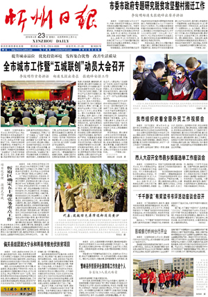 4月22日,忻州市召開會議,動員全市開展“五城聯(lián)創(chuàng)”工作。提出了要以建設宜居忻州、造福人民群眾為目的、以“創(chuàng)衛(wèi)”為基礎、以“創(chuàng)園”為重點的創(chuàng)建國家衛(wèi)生城市、省級園林城市、國家環(huán)保模范城市、省級智慧城市、省級文明城市。同時宣布成立了“五城聯(lián)創(chuàng)”總指揮部,全面推進了“五城聯(lián)創(chuàng)”工作。9月2日和12月9日,我市相繼召開忻州城區(qū)創(chuàng)建國家衛(wèi)生城市大會和再動員大會,對創(chuàng)衛(wèi)工作再部署、任務再明確,進一步動員市、區(qū)各級各部門提高認識,明確責任,強化措施,狠抓落實,確保城區(qū)順利創(chuàng)建國家衛(wèi)生城市。目前中心城區(qū)創(chuàng)建國家衛(wèi)生城市通過專家暗訪,14個縣(市、區(qū))實現創(chuàng)衛(wèi)全覆蓋,全省唯一。中心城區(qū)和原平、五臺、寧武、岢嵐創(chuàng)建省級園林城市通過省考核驗收,數量全省第一。加強大氣污染防治,全年二級以上天氣同比增加9天,是全省完成年度目標任務的3個市之一。(2016年4月23日《忻州日報》)