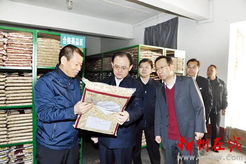圖為市委書(shū)記李俊明在市藥業(yè)集團(tuán)調(diào)研。本報(bào)記者 劉紀(jì)森 攝