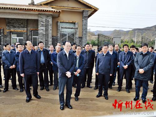 市委書(shū)記李俊明和參會(huì)人員在岢嵐縣宋家溝觀(guān)摩農(nóng)村建筑特色風(fēng)貌整治情況。劉紀(jì)森 攝