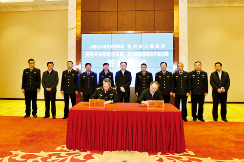 為進(jìn)一步貫徹落實(shí)省委省政府《關(guān)于全面擴(kuò)大開放的意見》,市政府和山西出入境檢驗(yàn)檢疫局本著“合作、服務(wù)、促進(jìn)、發(fā)展”的原則,經(jīng)認(rèn)真協(xié)商,就發(fā)揮各自職能優(yōu)勢(shì),促進(jìn)農(nóng)產(chǎn)品擴(kuò)大出口、創(chuàng)建法蘭出口質(zhì)量安全示范區(qū)以及支持五臺(tái)山機(jī)場(chǎng)航空口岸臨時(shí)對(duì)外開放等方面達(dá)成共識(shí),建立合作機(jī)制,促進(jìn)我市對(duì)外開放和外向型經(jīng)濟(jì)發(fā)展,助力脫貧攻堅(jiān)。具體合作事項(xiàng)包括:一、促進(jìn)農(nóng)產(chǎn)品擴(kuò)大出口。確定重點(diǎn)幫扶產(chǎn)業(yè),創(chuàng)建出口食品農(nóng)產(chǎn)品質(zhì)量安全示范區(qū),培育出口企業(yè),打造知名品牌,拓展國際市場(chǎng)。二、助推出口工業(yè)品質(zhì)量提升。推動(dòng)質(zhì)量品牌提升,推進(jìn)工業(yè)產(chǎn)品“三同”工程,加強(qiáng)國外技術(shù)性貿(mào)易措施應(yīng)對(duì),強(qiáng)化公共檢測(cè)技術(shù)服務(wù)。三、支持五臺(tái)山機(jī)場(chǎng)航空口岸臨時(shí)對(duì)外開放。全力支持五臺(tái)山機(jī)場(chǎng)對(duì)外開放口岸平臺(tái)建設(shè),科學(xué)規(guī)劃和建設(shè)五臺(tái)山機(jī)場(chǎng)口岸檢驗(yàn)檢疫技術(shù)查驗(yàn)設(shè)施,做好口岸核心能力建設(shè)和動(dòng)植物檢疫規(guī)范化建設(shè)各項(xiàng)工作,防范國外人類傳染病和動(dòng)植物疫情疫病傳入,保障國門生物安全。