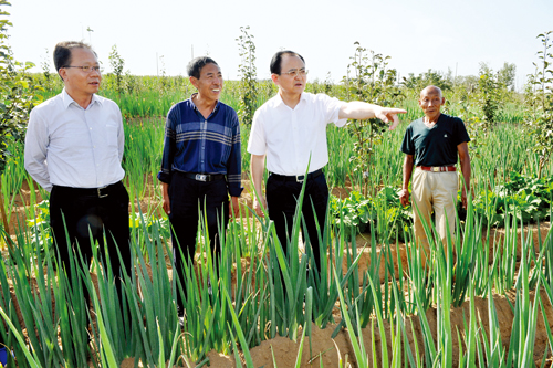 高城鄉(xiāng)高城村多年種植商品辣椒,輻射帶動(dòng)全區(qū)商品椒種植達(dá)10萬余畝。當(dāng)前正是辣椒收儲(chǔ)加工的高峰期,李俊明實(shí)地察看辣椒產(chǎn)業(yè)園區(qū)內(nèi)的收儲(chǔ)加工情況,了解育苗大棚經(jīng)營收入,詢問送售辣椒農(nóng)民的種植收益,詳細(xì)了解帶動(dòng)貧困群眾增收情況。李俊明指出,要持續(xù)深入打造辣椒生產(chǎn)全產(chǎn)業(yè)鏈條,通過規(guī)?;?、品牌化、標(biāo)準(zhǔn)化以及線上線下同步發(fā)展,建立產(chǎn)業(yè)發(fā)展與貧困群眾的利益聯(lián)結(jié)機(jī)制,積極吸引周邊鄉(xiāng)村貧困群眾參與勞務(wù),帶動(dòng)貧困群眾脫貧增收。董村鎮(zhèn)在傳統(tǒng)種植項(xiàng)目基礎(chǔ)上,由各村黨支部書記帶頭種植無公害紅薯、菌肥茄子、高油花生、大蔥、大蒜、板藍(lán)根等示范田,引導(dǎo)農(nóng)民調(diào)整種植結(jié)構(gòu)。李俊明實(shí)地察看了連片種植的百余畝高油花生種植田,詳細(xì)詢問實(shí)際產(chǎn)出比。他說,農(nóng)業(yè)供給側(cè)結(jié)構(gòu)性改革既要發(fā)揮好市場(chǎng)的調(diào)節(jié)作用,也要發(fā)揮政府的引導(dǎo)作用。要學(xué)習(xí)忻府區(qū)支部書記示范田的有益創(chuàng)新,通過支部書記、村主任等村干部帶頭,讓農(nóng)民在看得見的收益引導(dǎo)下自覺調(diào)整種植結(jié)構(gòu),把“三基”建設(shè)的成果最終體現(xiàn)到帶動(dòng)農(nóng)民脫貧增收上。