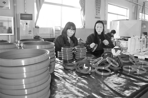 圖為1月21日,原平市泰寶密封有限公司的工人們正在生產(chǎn)加工密封件。該企業(yè)擁有國際先進(jìn)水平的奧地利無模密封件生產(chǎn)線,年生產(chǎn)能力達(dá)1200萬件。產(chǎn)品行銷東南亞各國和全國二十多個省市,廣泛應(yīng)用于煤炭、石油、冶金、機(jī)械、化工、電力、交通運輸?shù)刃袠I(yè)。(褚震 攝)