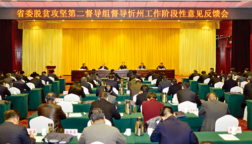 反饋會上,王德貴對忻州市脫貧攻堅工作給予充分肯定。他指出,忻州市用習總書記系列重要講話精神統(tǒng)一思想、武裝頭腦、凝聚共識,認真貫徹落實黨中央、國務(wù)院和省委、省政府對脫貧攻堅的重大決策部署,特別是以習總書記視察山西為契機,深入實施“1661”發(fā)展戰(zhàn)略和“3659”脫貧攻堅策略,堅持精準扶貧和精準脫貧方略,全市橫向到邊、縱向到底的脫貧攻堅格局基本形成,脫貧攻堅大勢向好、上下同心、氛圍濃厚,出臺了新政策、采取了硬措施和可追溯機制,呈現(xiàn)出新氣象、新面貌、新變化和新亮點。針對督導中發(fā)現(xiàn)的問題和不足,王德貴要求,要加強黨建引領(lǐng),進一步提高政治站位;堅持全面從嚴治黨,狠抓作風建設(shè);堅持以人民為中心的發(fā)展思想,激發(fā)群眾的內(nèi)生動力;強化責任擔當,嚴肅追責問責,嚴格落實整改工作。要在較真上下功夫,在精準上下功夫,建立健全工作臺賬,嚴格規(guī)范問題、責任、整改清單,及時報告整改結(jié)果。下一步,建議在今后的工作中進一步增加對主體責任和工作責任的考核內(nèi)涵,細化量化考核內(nèi)容。希望從政治高度、政策廣度、調(diào)研深度、工作態(tài)度、措施力度、作風實度、業(yè)務(wù)精度、干群親度、較真嚴度、履職優(yōu)度十個維度建立可量化的考核體系,為全省提供范本。希望思想認識上重視再重視、領(lǐng)導責任上壓實再壓實,政策措施上精準再精準,工作作風上過硬再過硬,扎扎實實做好當前的工作,確保今年脫貧攻堅再戰(zhàn)再勝。