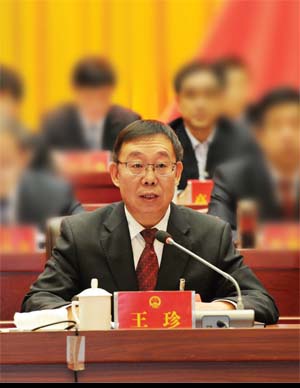 市人大常委會(huì)主任王珍主持閉幕大會(huì)并講話。本報(bào)記者 劉紀(jì)森 攝