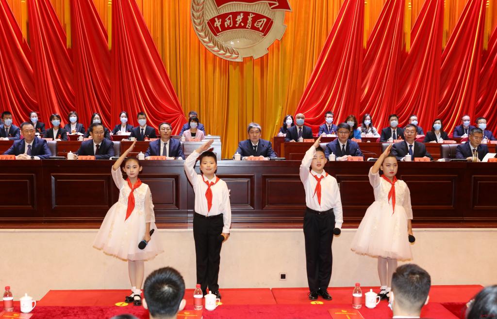 少先隊(duì)員代表向大會(huì)獻(xiàn)詞。范濤 攝