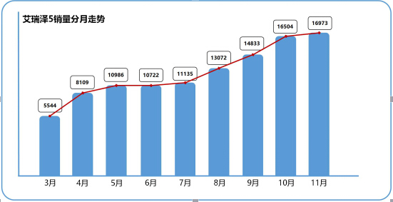 和SUV市場(chǎng)相比,自主品牌在轎車領(lǐng)域的表現(xiàn)一直差強(qiáng)人意,但是,今年奇瑞推出的一款中級(jí)家轎可謂是出盡風(fēng)頭,上市253天銷量突破10萬輛,11月份銷量達(dá)到16973輛,刷新了自主轎車新車型銷量增速記錄。在11月份舉辦的廣州國(guó)際車展期間,艾瑞澤5更是一口氣拿了11項(xiàng)大獎(jiǎng),堪稱拿獎(jiǎng)拿到手軟。