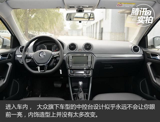 進(jìn)入車(chē)內(nèi), 大眾旗下車(chē)型的中控臺(tái)設(shè)計(jì)似乎永遠(yuǎn)不會(huì)讓你眼前一亮,內(nèi)飾造型上并沒(méi)有太多改變。全新三輻平底方向盤(pán)是最大改變,盤(pán)輻大小正好,握感也很不錯(cuò),鋼琴烤漆的飾條更是點(diǎn)睛之筆,兩側(cè)多功能按鍵可以控制多媒體和藍(lán)牙電話(huà)等功能。儀表盤(pán)的底紋有所改變,黑底白字清晰易讀,中央是單色行車(chē)電腦顯示屏。車(chē)內(nèi)空調(diào)出風(fēng)口造型有所調(diào)整,內(nèi)部構(gòu)造更加復(fù)雜。