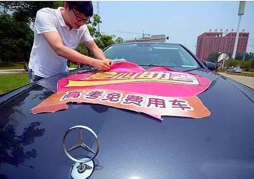 瑪莎拉蒂、路虎、奔馳、寶馬……等十輛豪車在路邊一字排開(kāi),每輛車的發(fā)動(dòng)機(jī)蓋上都貼著“高考免費(fèi)用車”的標(biāo)語(yǔ),盡管低調(diào)但車隊(duì)還是吸引了眾人的目光。