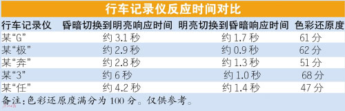 此次測試,車天下君準(zhǔn)備一個(gè)“黑盒子”,里面放置一個(gè)屏幕常亮的智能手機(jī)。在“黑盒子”外面,放置另外一個(gè)屏幕常亮的智能手機(jī)。切換時(shí)間控制在0.3秒之內(nèi),分為“明到暗”和“暗到明”兩個(gè)環(huán)節(jié),記錄行車記錄儀場景切換時(shí)的響應(yīng)時(shí)間。由測試結(jié)果一覽表可以看到,參與測試5個(gè)型號的行車記錄儀的響應(yīng)時(shí)間都不盡相同:短則1秒,長則6秒。車天下君歸納如下,質(zhì)量合格的行車記錄儀從昏暗切換到明亮環(huán)境的響應(yīng)時(shí)間應(yīng)在3~4秒之間,從明亮切換到昏暗環(huán)境當(dāng)中的響應(yīng)時(shí)間應(yīng)該在1~2秒之內(nèi)。