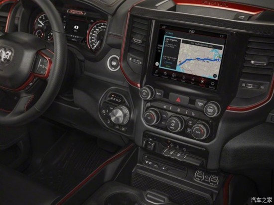 『全新一代Ram 1500』 在外媒AllPar的報(bào)道中,是道奇內(nèi)部工程師透露了將為Ram皮卡推出Hellcat車型的消息。眾所周知,Hellcat車型所搭載的6.2L V8機(jī)械增壓發(fā)動(dòng)機(jī)最大功率為527kW,也就是707英制馬力(美國(guó)常用單位)、717公制馬力。道奇Ram的高性能版預(yù)計(jì)也會(huì)采用這樣的調(diào)校,因?yàn)榇蠹野l(fā)現(xiàn)了一個(gè)細(xì)節(jié):官方公布的Ram 1500內(nèi)飾官圖中,中控中所顯示的時(shí)間就是7:07,暗示707英制馬力。