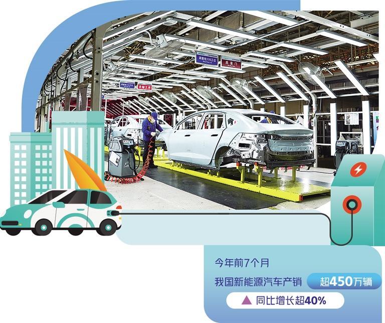 新能源汽車是全球汽車產(chǎn)業(yè)轉型升級、綠色發(fā)展的主要方向,也是我國汽車產(chǎn)業(yè)高質(zhì)量發(fā)展的戰(zhàn)略選擇。今年前7個月,我國新能源汽車產(chǎn)銷超過450萬輛,同比增長超過40%。其中,出口63.6萬輛,同比增長1.5倍,成為我國經(jīng)濟一個強勁增長點。